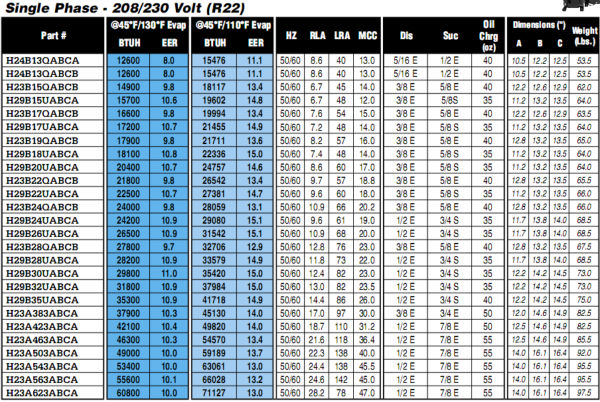 | Bristol | Piston | H82J13BABCA | R410 | 230/208 | 60Hz | 13000BTU |